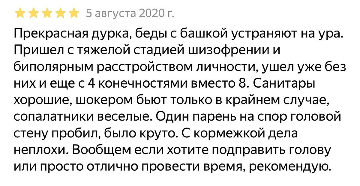 Я не шучу, это реальные отзывы на Балашихинское ПНД в Яндексе!