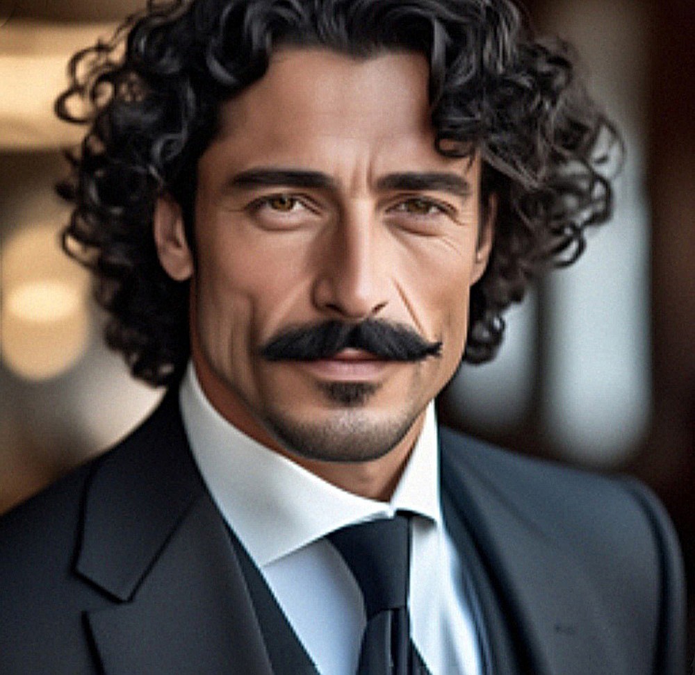 Вот он наш герой – мужчина тридцати пяти-сорока лет, высокий, атлетически сложённый. Чёрные волосы его заплетены в косу и спускаются почти до пояса, в глазах глубокого синего цвета светятся ум и решительность, твёрдо сжатый, но не жёсткий рот и выдающийся вперёд подбородок говорят об упрямстве и недюжинной силе воли. Из-под обрамлённых густыми усами губ, изредка растягивающихся в невесёлой улыбке, блестят ровные зубы, орлиный нос придаёт своему владельцу некоторое сходство с этой гордой птицей, а тело обвивает чёрный шёлковый плащ, скрывающий вполне современную, того же немаркого цвета одежду.