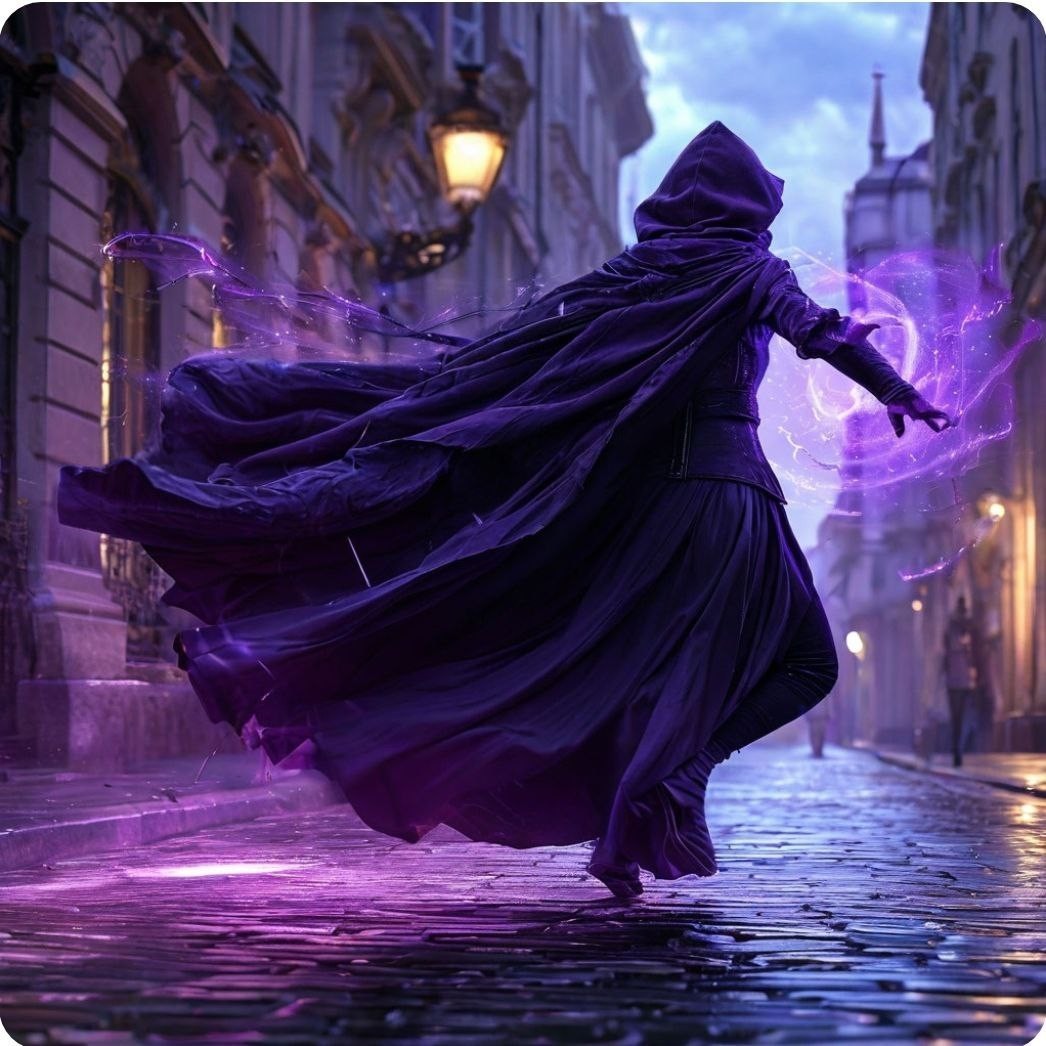 Нечеловеческий рывок — за ее спиной вспыхнул фиолетовый туман — и вот не видно уже ни хрупкой спины в плаще, ни преступника.