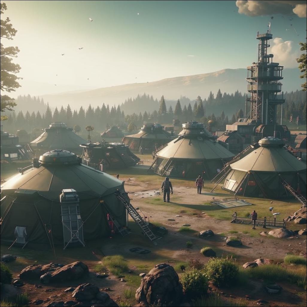 В течение последующих нескольких недель Дейв носился по территории колонии, как ломовая лошадь, руководя возведением фортификационных защитных сооружений вокруг поселения. Путем угроз, выбитых зубов, шантажа и всевозможных премиальных обещаний в виде взяток ему удалось уже через месяц закончить основные работы по его возведению. В первую очередь возводились наблюдательные вышки и сама инфраструктура трёх эшелонированного оборонительного периметра от непрошеных гостей. Гражданские службы в свою очередь начали возводить уже и другие объекты гражданского характера для развития жизнедеятельности будущего поселения. Благо собранная к этому моменту пилорама уже вовсю штамповала из доставленного заготовщиками леса целый спектр строительных материалов. Само поселение изначально пока располагало только одними палатками, но кое-где уже возводились административные и жилые здания. Из строительной техники колонисты располагали тремя бульдозерами, тремя грузовыми тягачами-лесовозами и ещё дюжиной других грузовых и пассажирских вездеходов. По расчётам, этого вполне было достаточно, чтобы обеспечить всем необходимым полторы тысячи поселенцев.